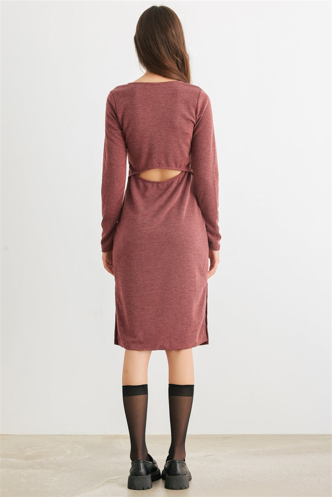Burgundy Cut-Out Back Long Sleeve Midi Dress