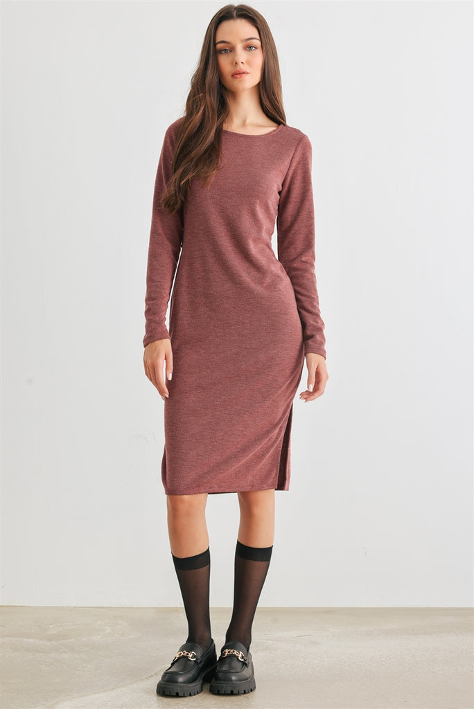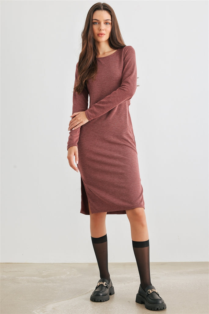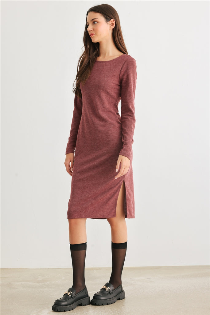 π€ Item Features: Burgundy, round neckline, long sleeves, cut-out back, side slits, midi length, semi-stretchy, not see through, unlined, casual, cute, cozy, girlish, fall winter