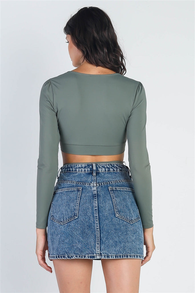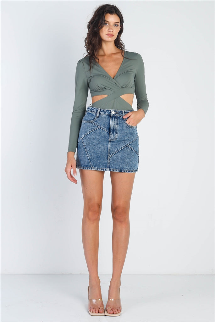 Olive Criss-Cross Long Sleeve Cut-Out Bodysuit