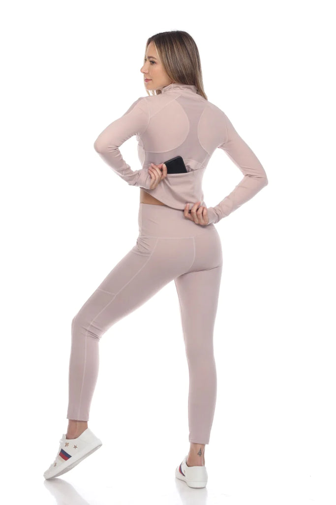 This iconic zip-up crop jacket active is our must-have sports jacket this season. With features like a secret key holder pocket sealed on the back for storage, and thumbholes inserted at the sleeves for extra comfort and support. Fabricated in our softest and buttery feel like material that moves-as-you goes. Our sports jacket is essential for your everyday active collection.