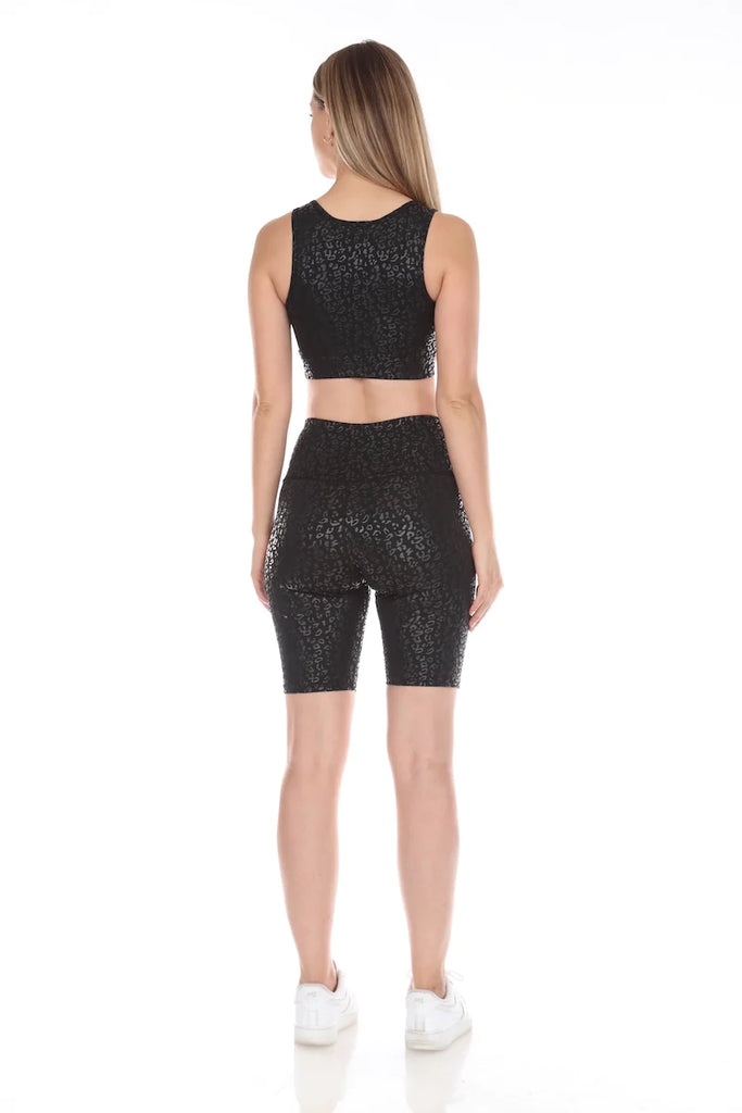 Your favorite *Must-Have* cheetah set is back & ready to hit the streets! This trendy set includes, a medium-high support sports bra, detailed with a scoop neck & backline. Biker shorts feature an elastic high-waistband and knee-length cut.